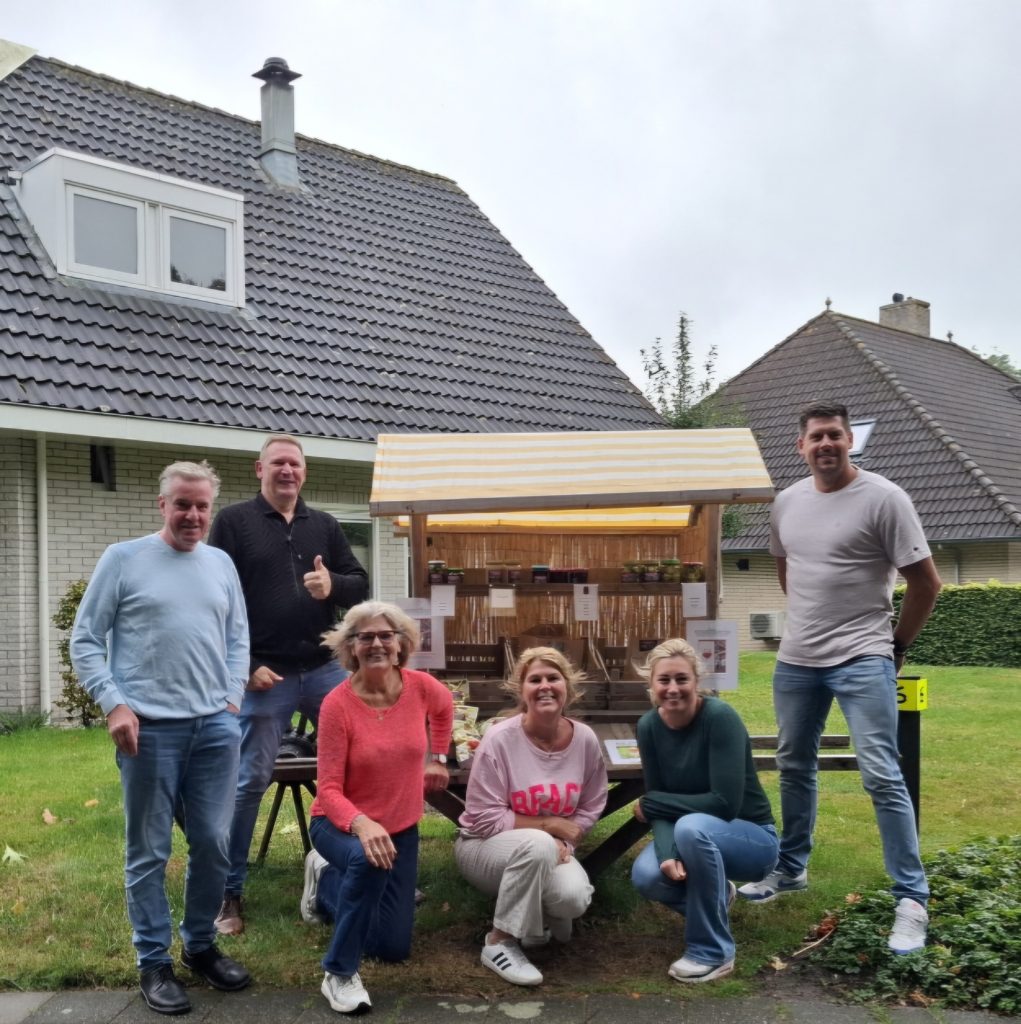 “Lutske en Hans wonen aan de Pater Doesburgloane tegenover de Kruiskerk in Burgum, een plek waar veel mensen langs komen. Onze meiden, Silke & Marrit, hadden we een Barbie beloofd van de opbrengsten. Uiteindelijk is dit toen een groot Barbiehuis geworden. Vanaf toen besloten we om elk seizoen een kraam te plaatsen en de opbrengst te doneren aan een goed doel. De kraam krijgt steeds meer bekendheid en we merken dat mensen het leuk vinden dat we er goede doelen mee steunen. Wat ook meewerkt is dat al ons fruit en groente onbespoten is, dus biologisch.”